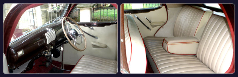 Poj. 3.6L V8 Flathead Liczba miejsc: 4 + kierowca Kolor: bordo (wi¶nia) Informacje ogólne: Skórzana, pięknie odrestaurowana tapicerka, jeden z dwóch takich pojazdów dostępnych w Polsce.