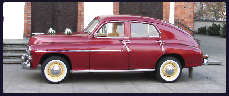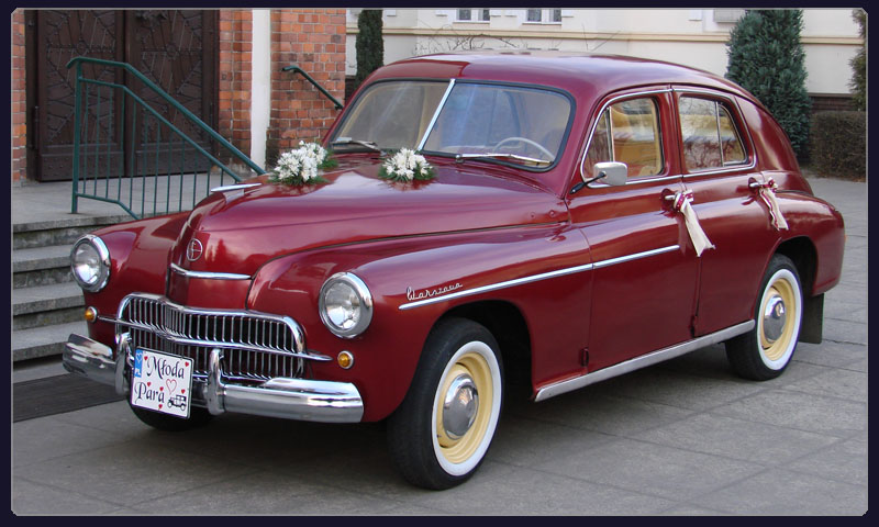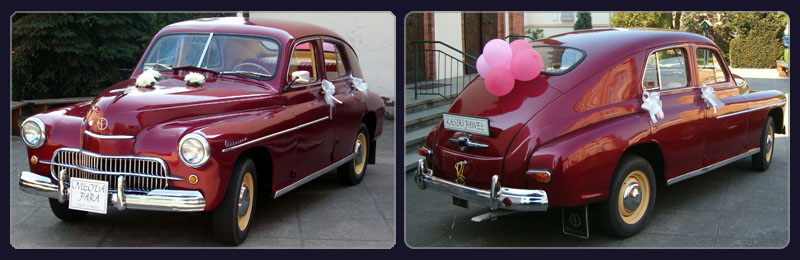 Liczba miejsc: 4 + kierowca Kolor: bordo Informacje ogólne: Skórzana, pięknie odrestaurowana tapicerka, klasyk PRL'u.